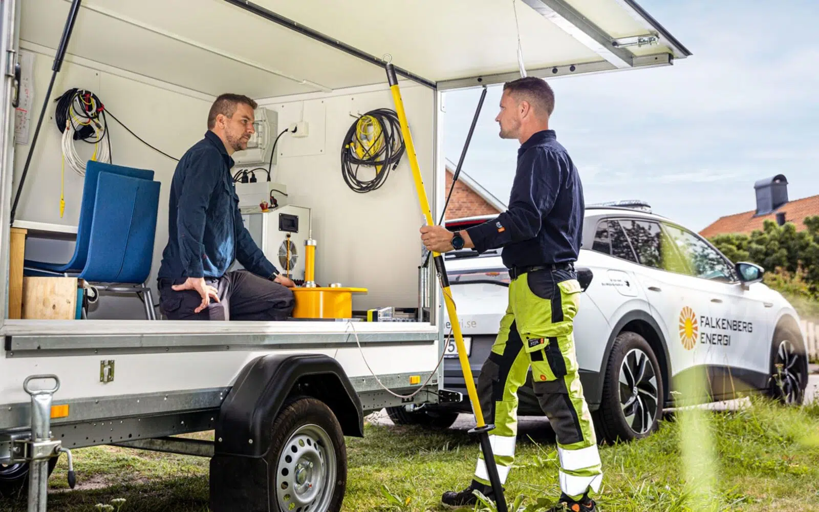 - VLF-test, Hållfasthetskontroll – Tillsammans med traditionell kabelfelsökning tar vi fram och lokaliserar felställen. Denna metod påverkar inte frisk kabel, en svag och åldrad kabel kan dock förstöras.